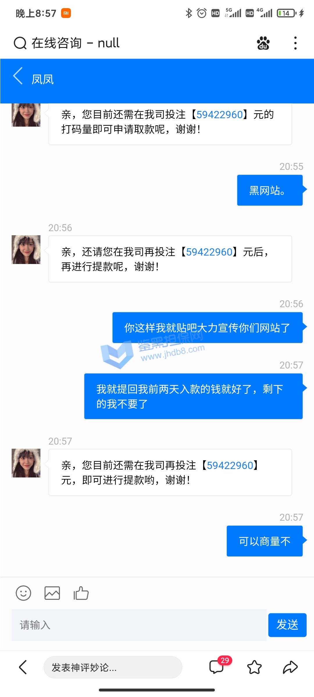 4.用户提交维权需为本人提交,若代替让人发布维权鉴黑担保网将拒绝受理;