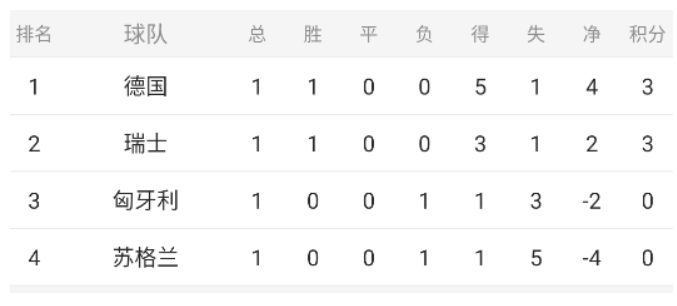 A组:德国(东道主)、苏格兰、匈牙利、瑞士;