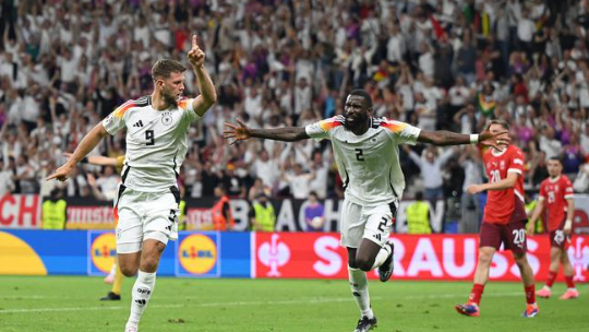 第3分钟,克罗斯禁区右侧角球传中,哈弗茨前点甩头攻门顶的太正,被索默得到。第17分钟,米特尔施泰特左路下底传中,后点穆西亚拉包抄铲射球被挡出。禁区外维尔茨把球敲给安德里希,安德里希禁区外突然抽射直接打出一记落叶球进网,但穆西亚拉包抄射门前对瑞士后卫犯规在先,主裁在VAR回看后吹安德里希的进球无效。第27分钟,克罗斯中路分球左侧,米特尔施泰特禁区角上直接抽射近角踢高。