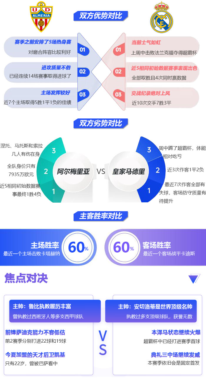 现时开出的数据看上去还算比较深,但两支球队实力差距悬殊,皇马即便是作客,毫无疑问都会更受关注,因此数据其实只是中规中矩,而且后续走势对于皇马也不算利好。再考虑到皇马毕竟在上周中多踢了已场欧冠赛事,体能储备相对会比较吃亏,所以本场赛事个人觉得阿尔梅里亚很有机会不会大败。