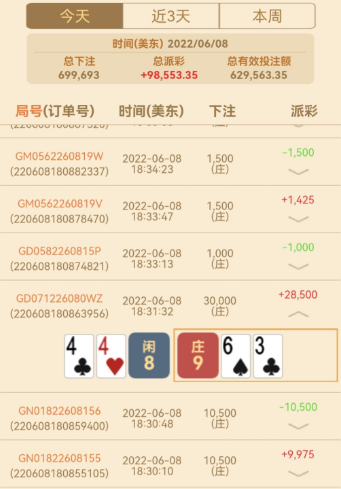 首先,我们以一万元为例,如果你有一万元的本金。那么最好是分成四个不等的档次,可以是100,300,500,1000的四个档次,这四个档次是所谓的平民档次,就是可以作为试水的作用。当你感到天时地利人和的时候,本金就可以分为1000,3000,5000三个档次。其次,在同一轮的投注过程当中,一定要保持投注金额的一致性。最后,在观察露珠的时候,一定要记住只打热号。通俗点来说,就是谁赢得次数多就打谁。
