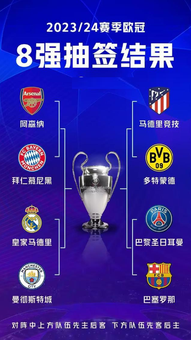 美女主持人林梦鸽对今年的欧冠1/4决赛进行了预测,4组对决中,她认为最终进入四强的球队是拜仁、曼城、马竞和巴萨。