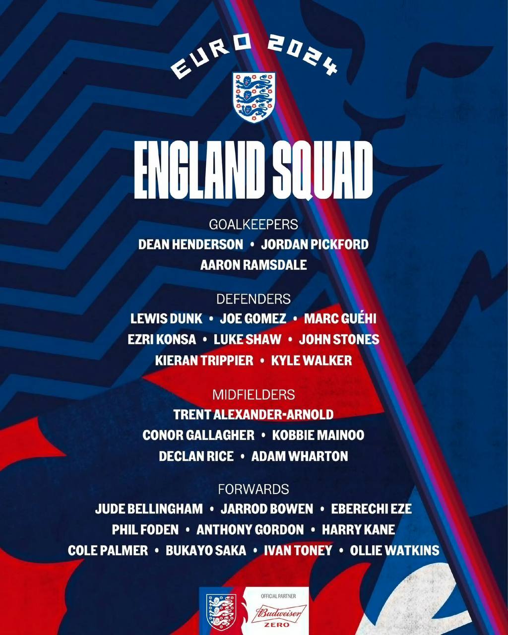 【欧洲杯前瞻】英格兰公布最终名单,凯恩领衔马奎尔落选!